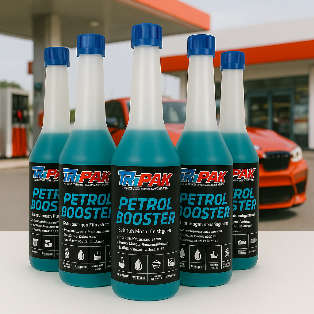 Tri-Pak Bensinbooster, din kompletta tillsats för alla bensin, tvåtakt och etanoldrivna motorer.
